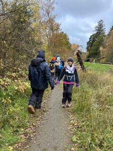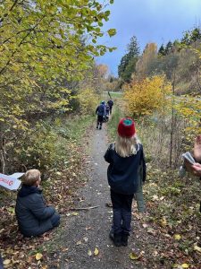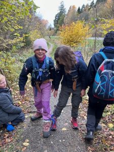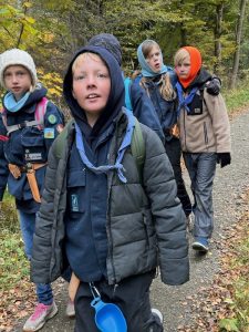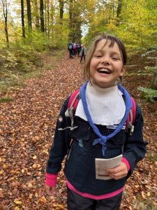 Eftermiddagen bød på en 5 km. hike hvor spejderne kunne vælge at gå baglæns, bundet sammen eller med bind for øjnene. En fantastisk udfordring, der slet ikke er så let som man tror.