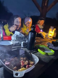 Juniorne er i Rundemoseshelter på oprykker hike. Turen er fyldt med massere af humør og seje spejdere. Vi har været på Patruljeløb, båret ved, læst morsekoder, sunget sang og spist leverpostej med ristede løg i lange baner.