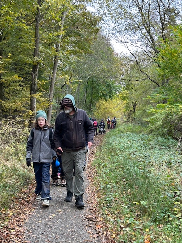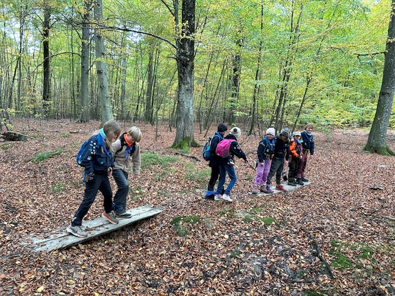 Eftermiddagen bød på en 5 km. hike hvor spejderne kunne vælge at gå baglæns, bundet sammen eller med bind for øjnene. En fantastisk udfordring, der slet ikke er så let som man tror.